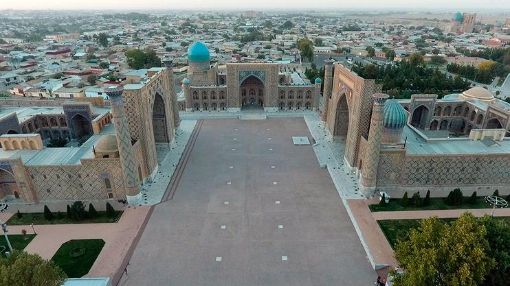 La plaza Registán —la tarjeta de visita de Samarcanda. Foto: milliycha.uz